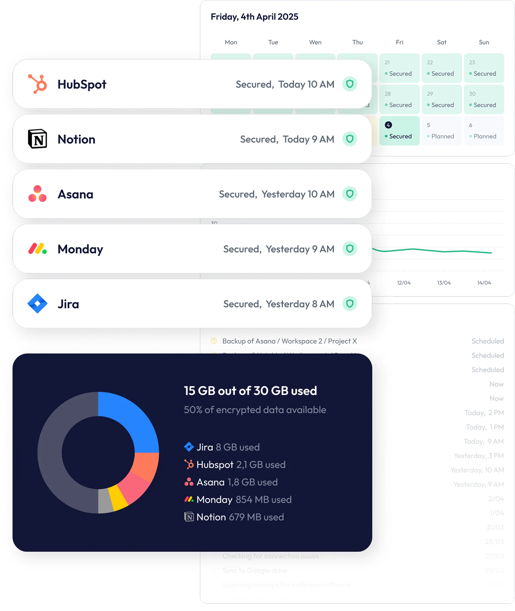 ProBackup captures daily, full backups across your SaaS stack (HubSpot, Notion, Asana, monday.com, Jira, and more). Granular restore, global search, and smart alerts ensure you never lose your work.